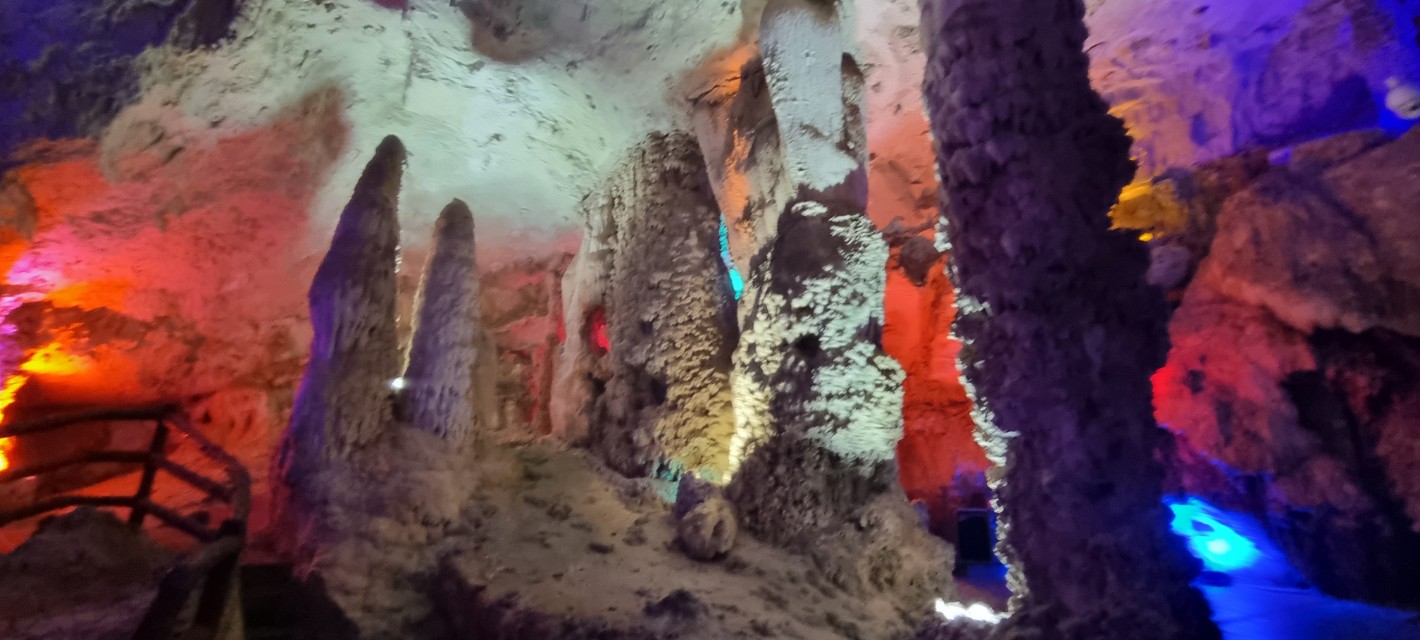 다양한 종유석이 조명을 받아서 휘황찬란하다.