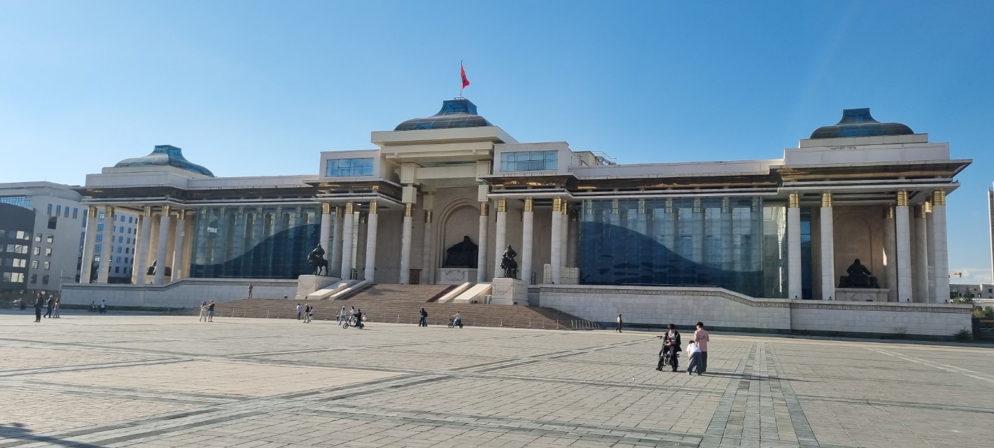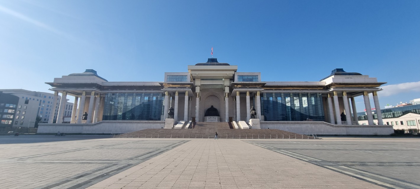 국회의사당 건물 앞 중앙에는 칭기스 칸 동상이 있는데 이를 기준으로 좌측에는 오고타이 칸, 우측에는 쿠빌라이 칸 동상이 버티고 있다.
